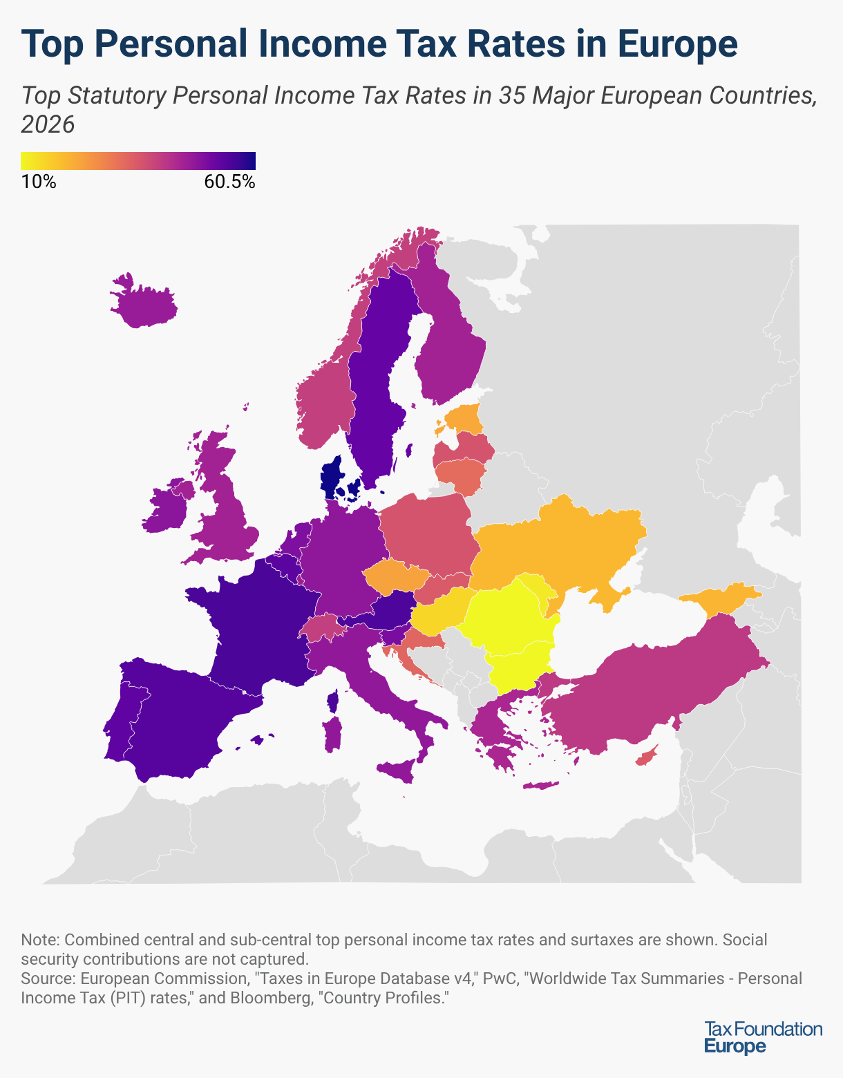 Top Statutory Personal Income Tax Rates in 35 Major European Countries, 2026
